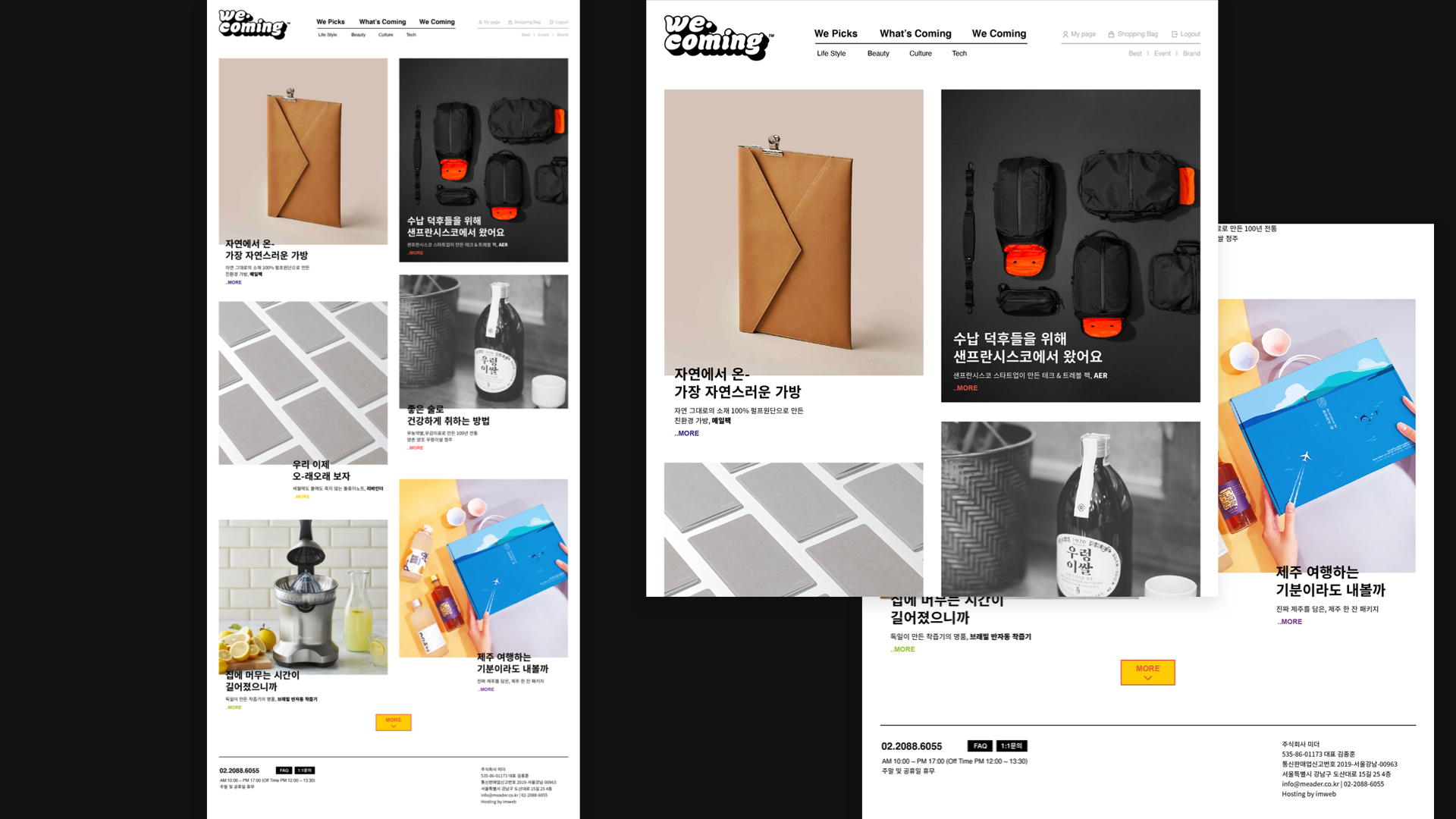 WeComing is a lifestyle platform that reduces the risk of brand selection to consumers by verifying products and various daily necessities through crowdfunding. Through this project, we organize WeComing's brand identity, produce names and brand slogans accordingly, and suggest logos and key visuals to provide appropriate validity for consumers to find WeComing and purchase products.